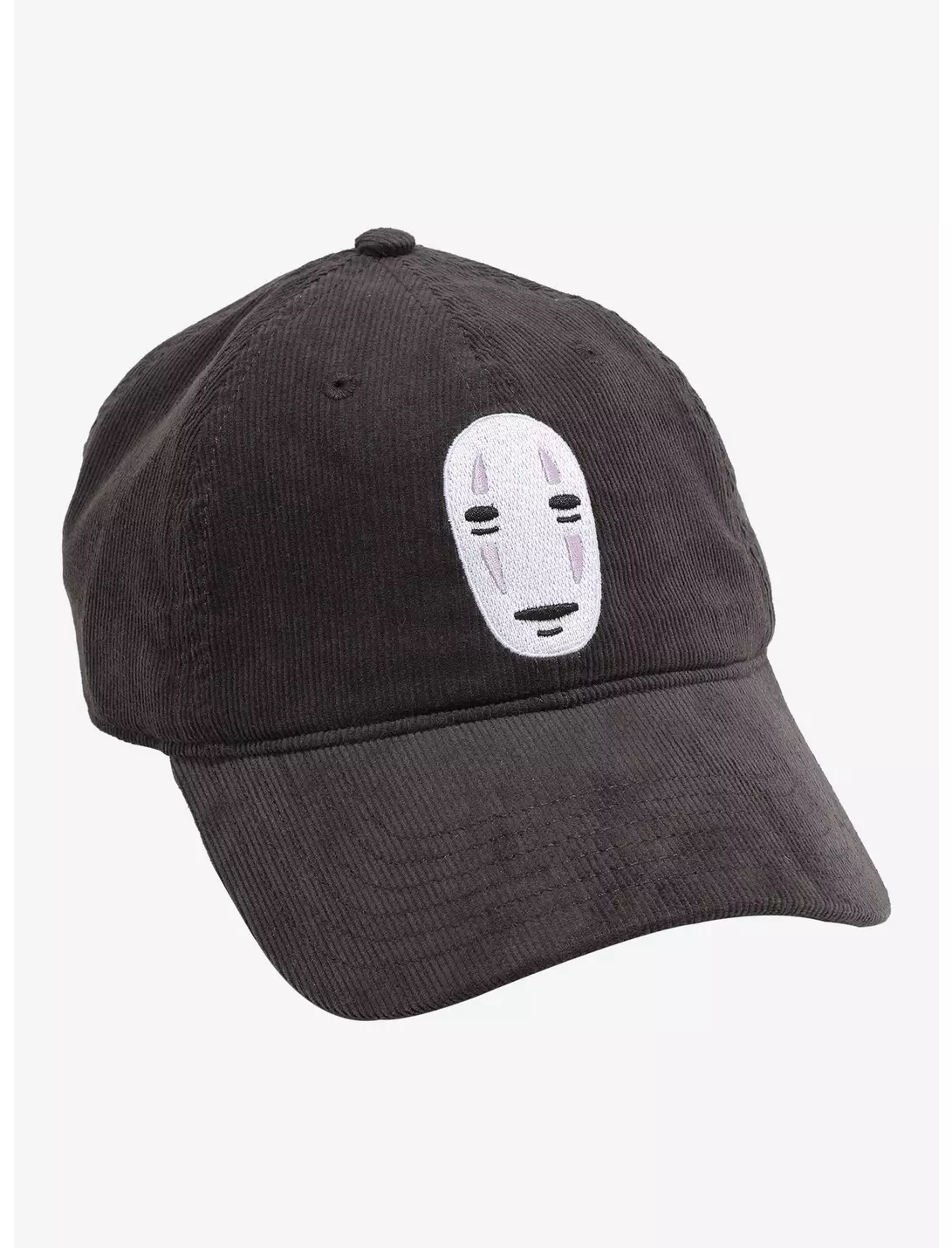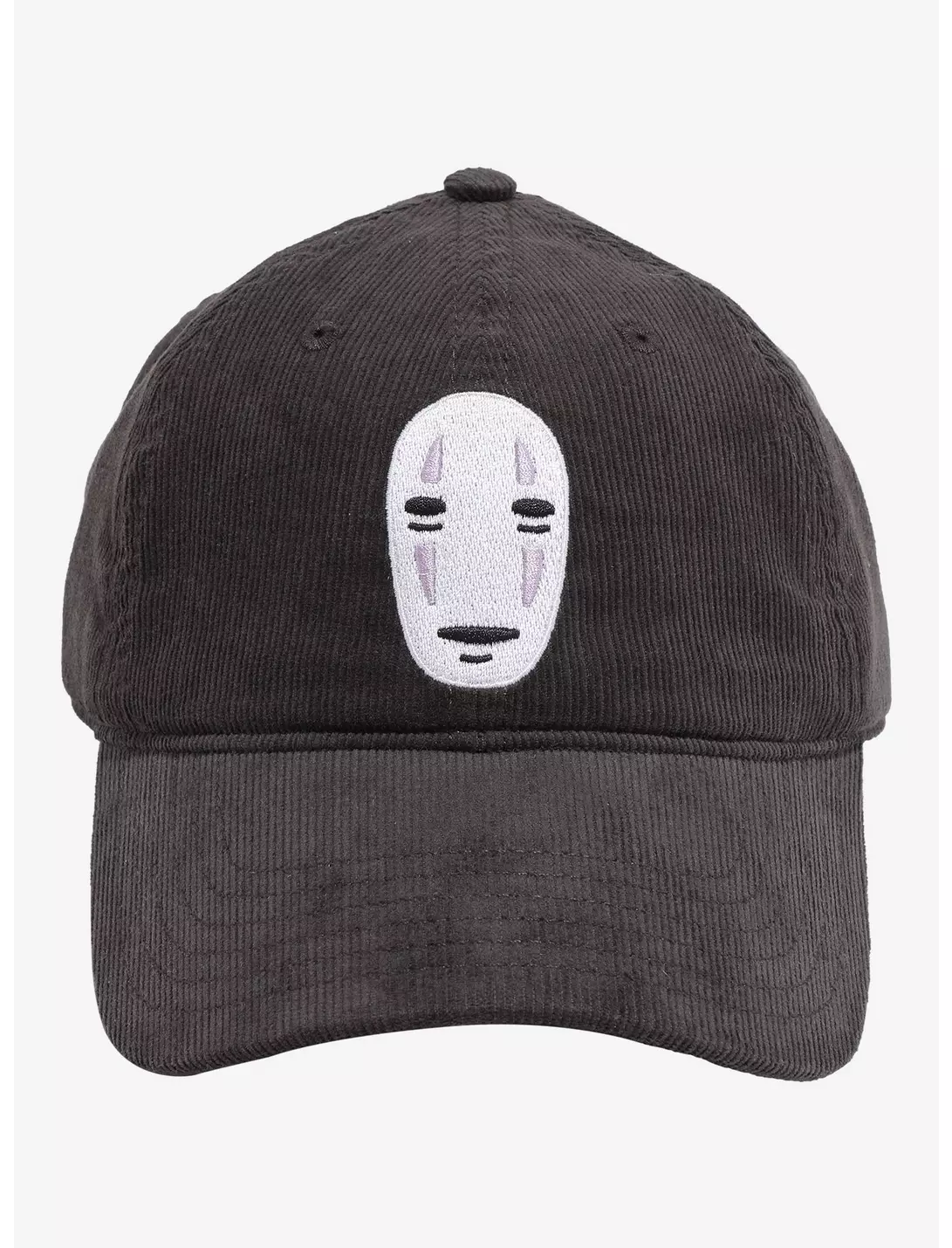 Enjoy your stay in the Spirit Realm wearing this Spirited Away dad cap! This corduroy cap features No-Face’s mask embroidered on the front.